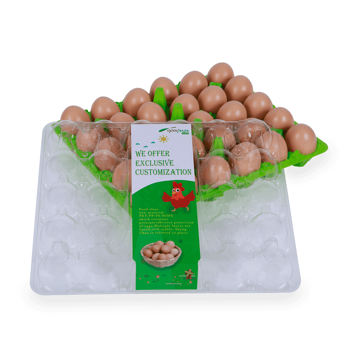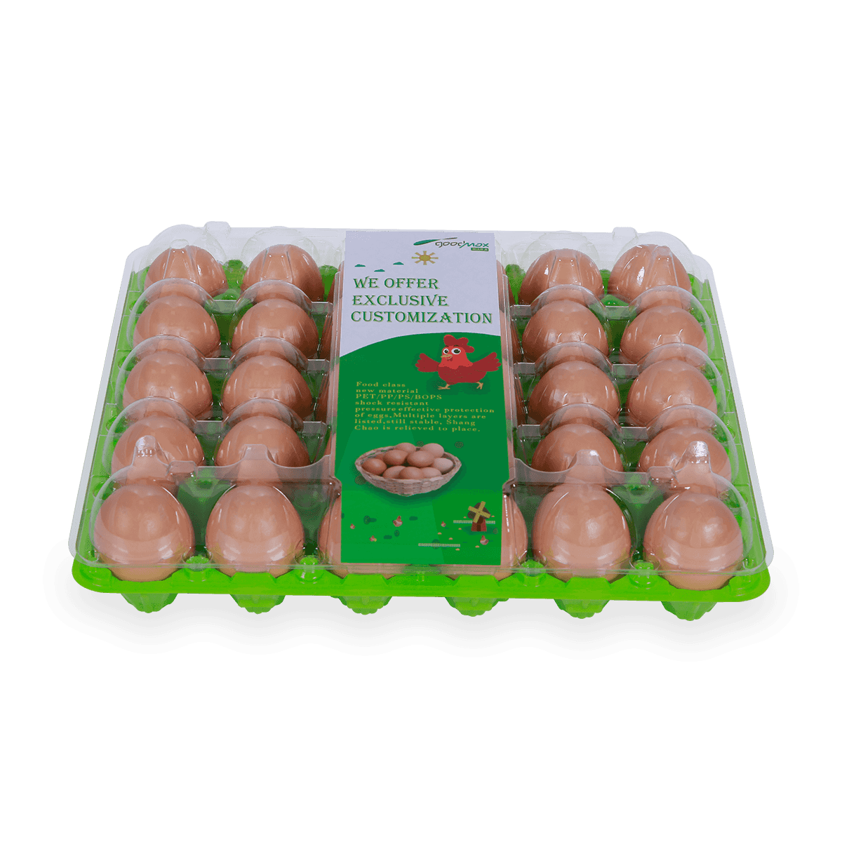家禽養殖場30孔雞蛋盒廣泛用于家庭供應、超市和家禽養殖場。它具有高清視野、外形和易裝卸的結構,以保證雞蛋的安全和快速包裝。還可以讓雞蛋之間保有距離,更透氣,使雞蛋儲存時間更久。